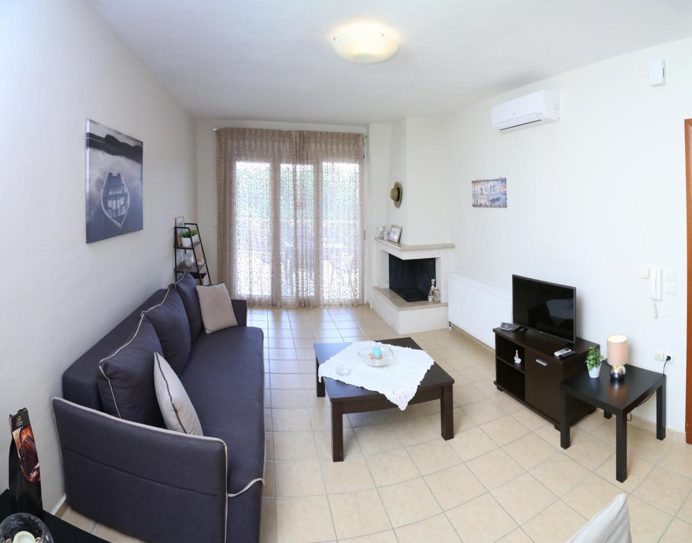 Deluxe Apartment. Guests will have a special experience as the apartment features a fireplace. This spacious apartment consists of 3 living rooms, 2 separate bedrooms and 1 bathroom with a walk-in shower and free toiletries. Guests will find a stovetop, a refrigerator, kitchenware and an oven in the well-fitted kitchen. The apartment also offers a barbecue. The air-conditioned apartment provides a flat-screen TV with satellite channels, a private entrance, soundproof walls, a tea and coffee maker as well as sea views. The unit offers 3 beds. ;