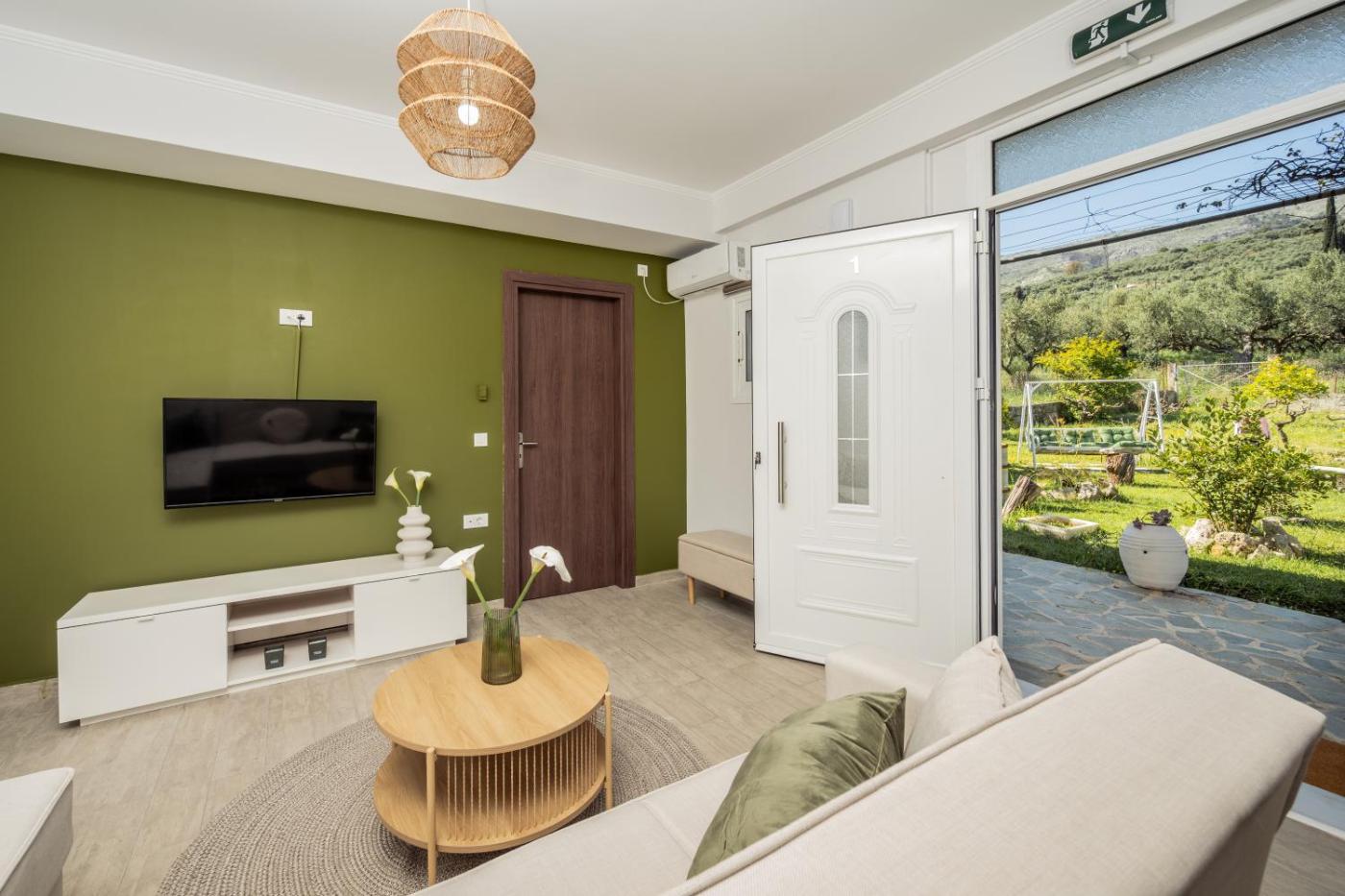 One-Bedroom Apartment. Boasting a private entrance, this air-conditioned apartment features a kitchen, 1 bedroom and 1 bathroom with a shower and a hairdryer. Guests will find a stovetop, a refrigerator, an oven and a microwave in the fully equipped kitchen. The apartment also comes with a barbecue. The apartment features a washing machine, a tea and coffee maker, a seating area, a TV, as well as garden views. The unit has 1 bed.